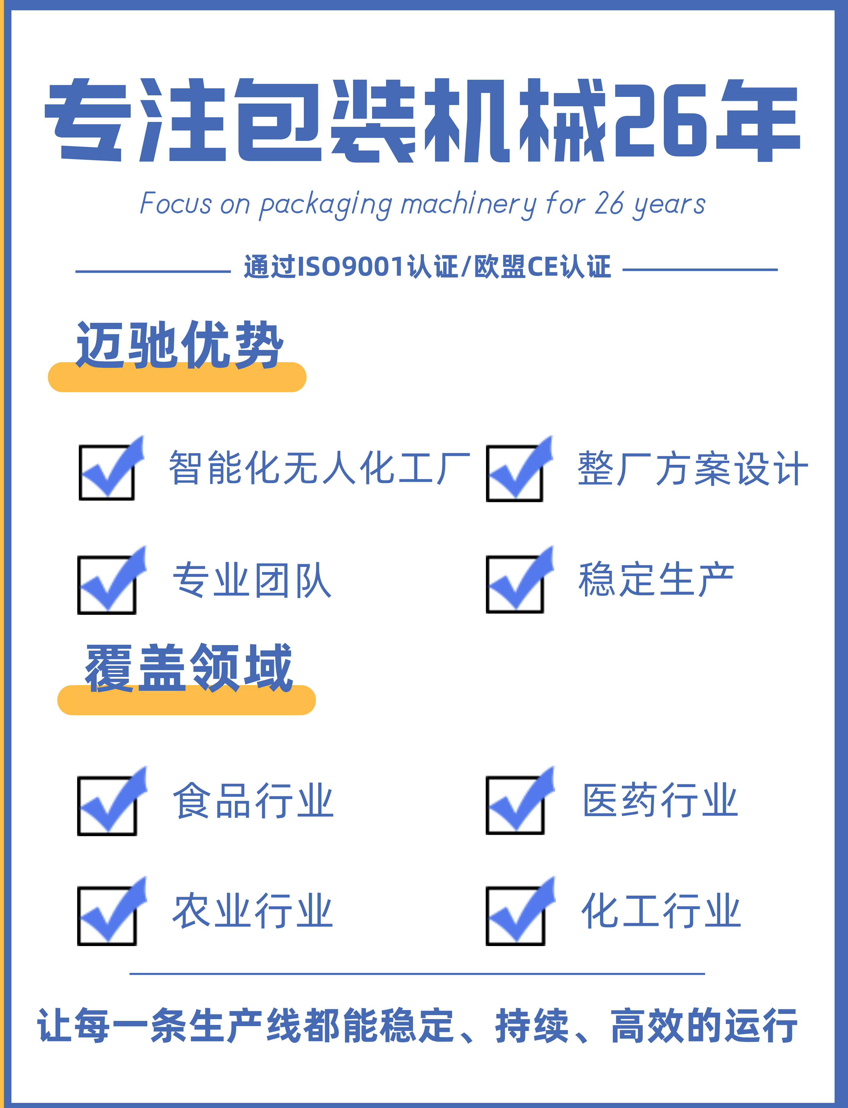 穿箭式打包機(jī) 覆頂纏繞膜機(jī) 協(xié)作碼垛機(jī) ABB460機(jī)器人碼垛機(jī) MCFX-4050自動封箱打包一體機(jī) MCZBZX-20十字坐標(biāo)裝箱機(jī) MCBLZX-1200蜘蛛手裝箱機(jī) MCKX-50X自動開箱機(jī) 二維碼采集系統(tǒng) MCZH-190B裝盒機(jī) 無序理袋機(jī) 封口縫包機(jī) 外抽式真空包裝機(jī) 罐外吹掃機(jī) MCFK鋁箔封口機(jī) MCYZTB-5160D圓瓶定位貼標(biāo)機(jī) MCSCTB-9190雙側(cè)面貼標(biāo)機(jī) MCPMTB-3160平面貼標(biāo)機(jī) MCJT-5020金屬檢測機(jī) MCZX240重量選別機(jī)醫(yī)藥行業(yè)